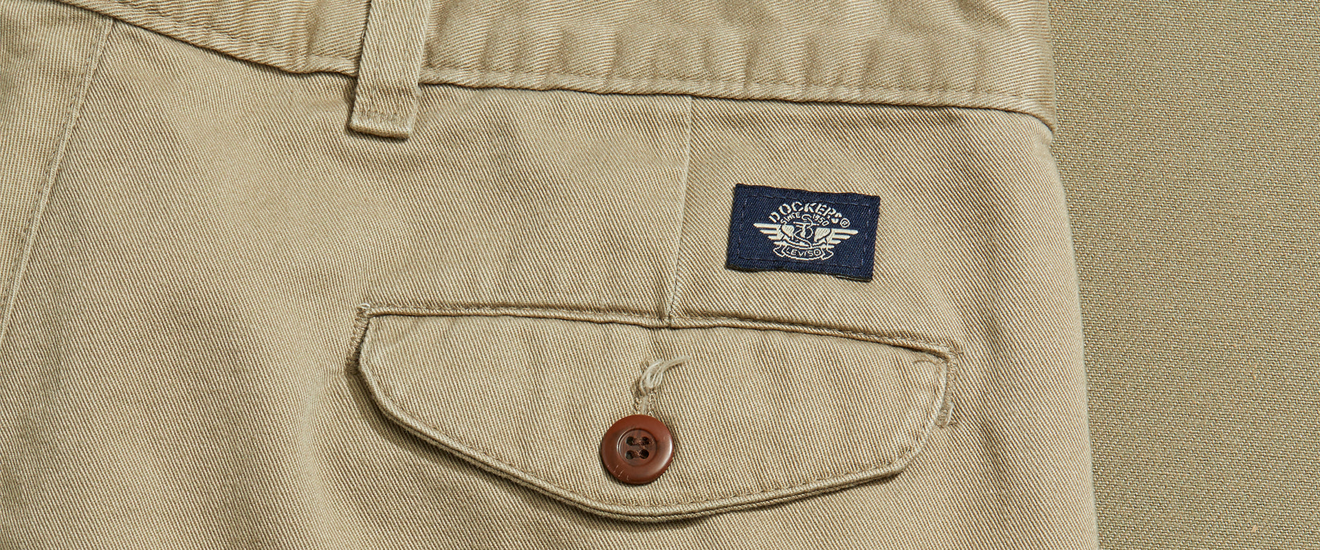 Dockers férfiak vasmentes khakik, klasszikus fazon, foltvédővel P840P1 ruházat új brit khaki